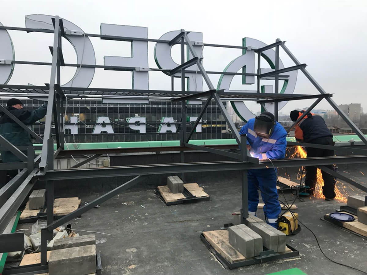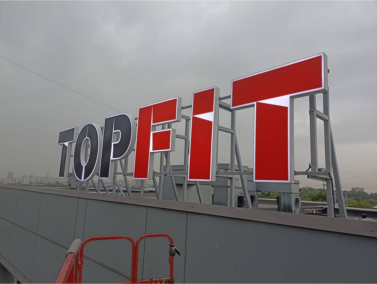 Крупноформатные конструкции, устанавливаемые на крышах зданий для обеспечения максимальной видимости с большого расстояния.