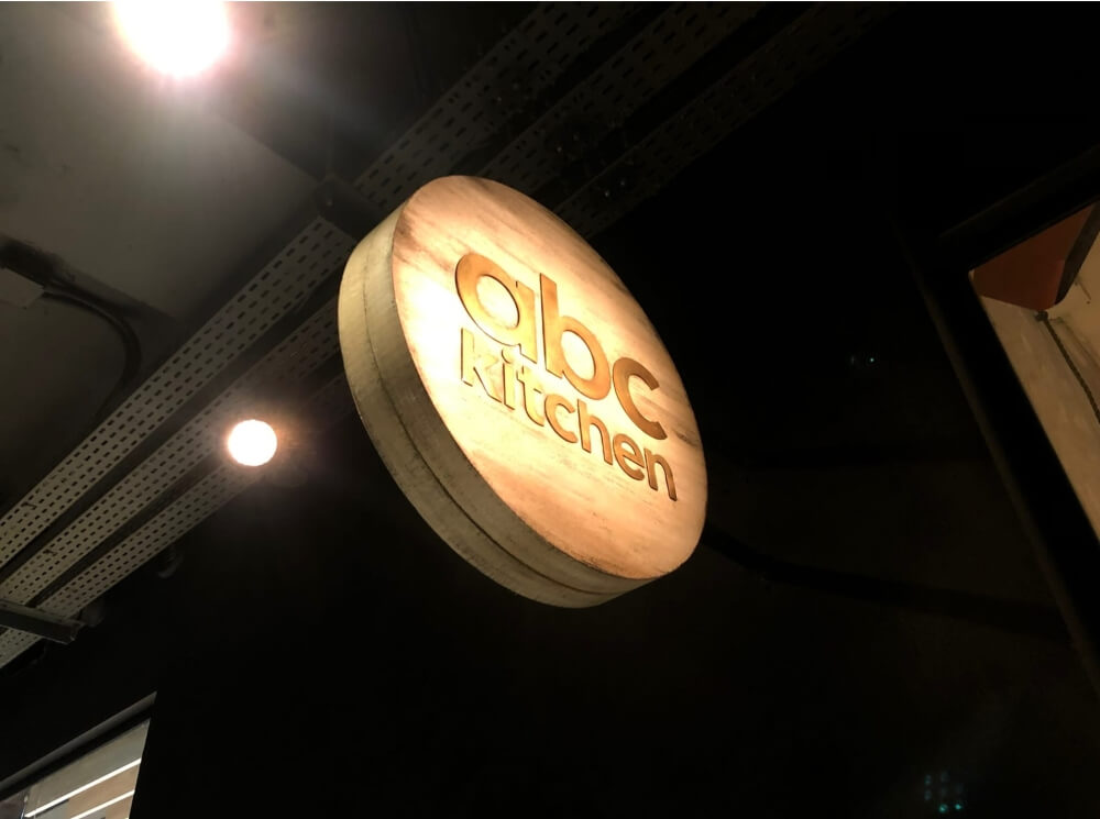 Изготавливается из композитных панелей с прорезями под инкрустацию из оргстекла. Подсветка – двусторонняя.